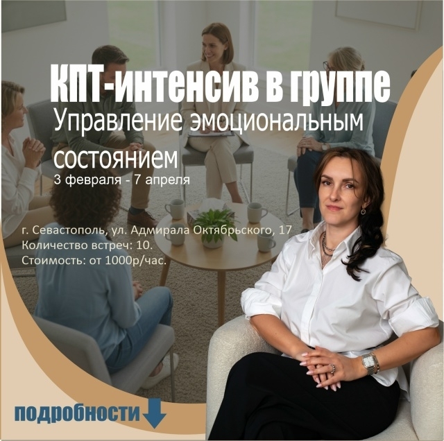 А самое ценное — это возможность увидеть свою ситуацию с разных, порой неожиданных, сторон благодаря мнениям и опыту других людей.Участие в КПТ-группе — это ваш шанс: