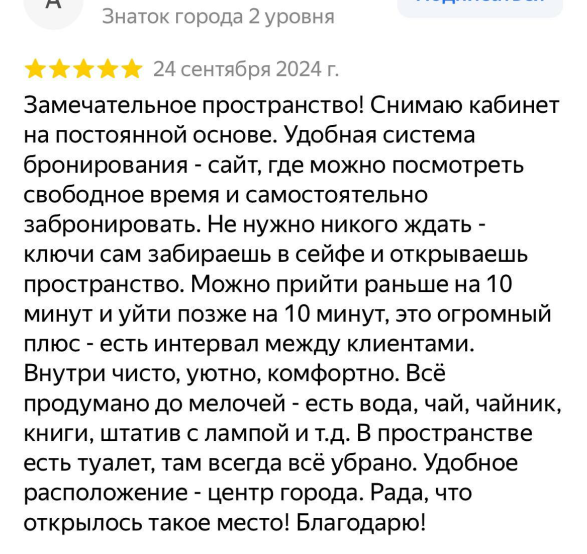 В нашем пространстве 2 зала, уютная атмосфера, напитки (вода, чай), своя кофемашина, необходимые для работы аксессуары (салфетки для слез, плед, кольцевая лампа, флипчарт, проектор), wi-fi и доступные цена на аренду кабинетов.